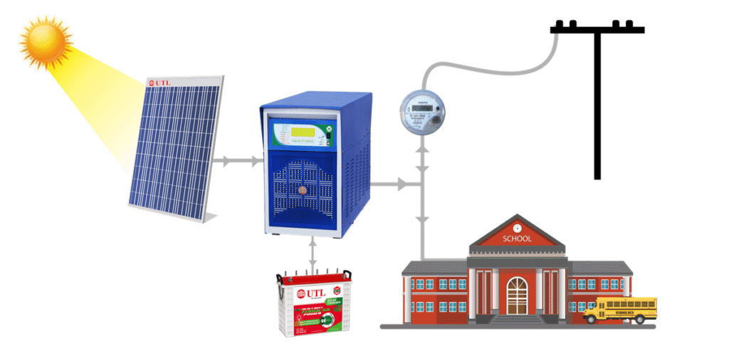 Agar solar se kam power generate hoti hai ya raat ka time hai, to electricity grid se supply mil jati hai.